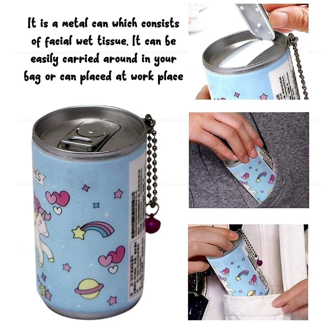 The compact can packaging keeps the wipes moist and ready to use, while also being easy to store in bags, drawers, or cup holders. Perfect for travel, school, office, or everyday touch-ups.